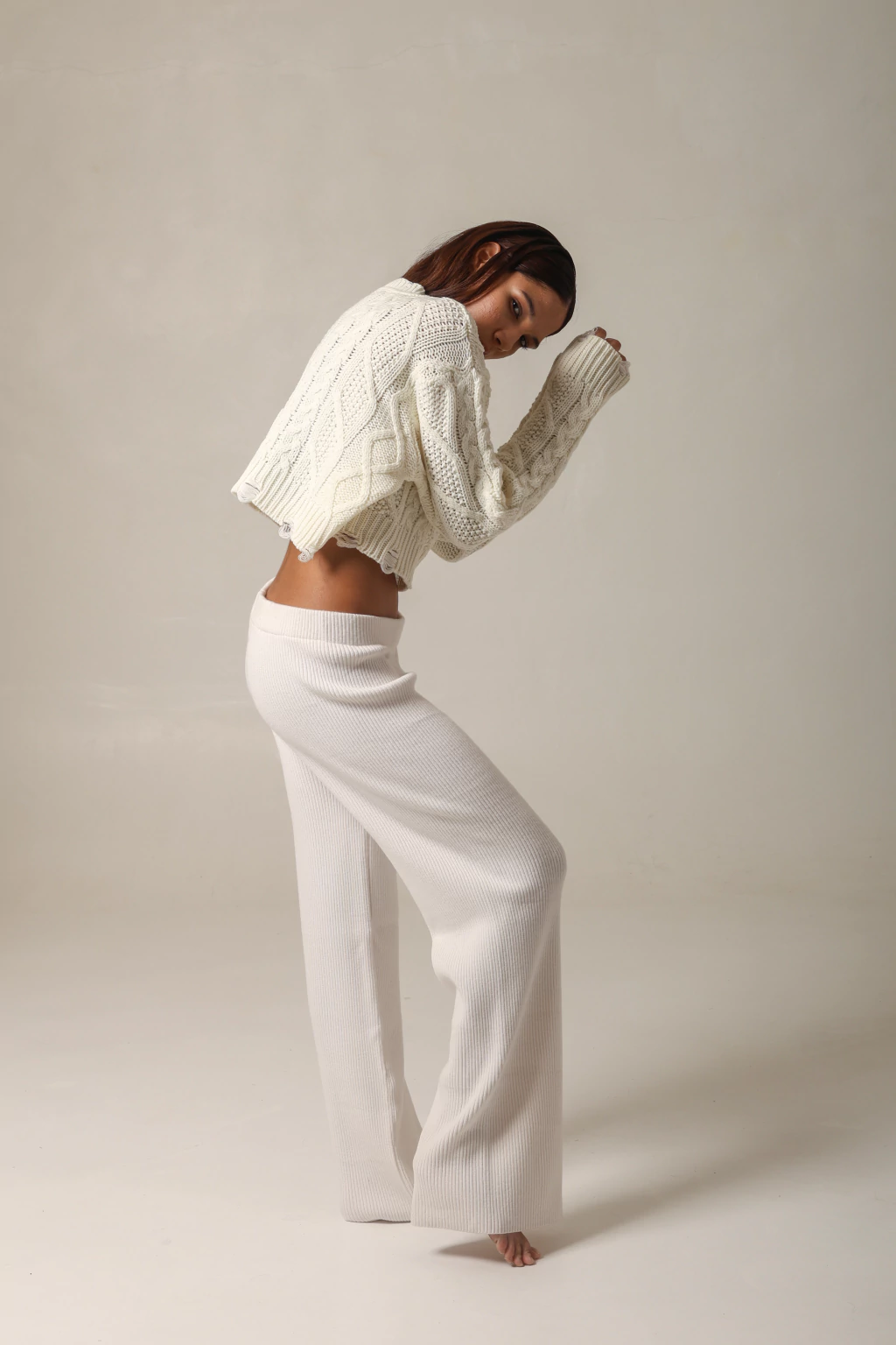 Pantalón tejido canalé, tejido de punto acanalado y elástico. Cintura ancha y elástica, súper comfy!